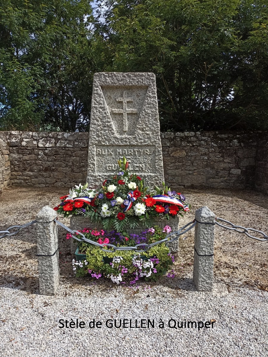le 29 juin 2001 Guélen, Penhoat et Kergrenn : les résistants se souviennent Mercredi soir à 18 h, l'Amicale des résistants de la région de Quimper s'est retrouvée pour un pèlerinage sur trois sites inscrits dans la mémoire de la Libération de Quimper. Les 27 et 28 juin 1944, en effet, aux villages du Guélen en Briec, de Penhoat en Kerfeunteun et Kergrenn en Ergué- Armel, des maquisards furent cernés et massacrés par les troupes d'occupation allemandes. Rescapés et familles des disparus avaient un rendez-vous du souvenir à honorer. Deux soirs de rang, les 27 et 28 juin, l'armée allemande a effectué des « coups de mains» sur des villages où des maquisards se retrouvaient assez régulièrement. Selon les rares rescapés, les Allemands étaient bien renseignés. Le hasard et la chance ont fait qu'il y a eu quelques rescapés. Tous les ans, les familles de ceux qui furent impliqués dans ces trois drames et les rares rescapés se donnent rendez-vous pour un dépôt de gerbes sur les lieux où moururent les patriotes. Mercredi soir, le même geste de respect et d'hommage a été accompli par une cinquantaine de personnes. Guélén, Penhoat, Kergrenn : le drapeau de la Compagnie de Briec a été déployé trois fois. Alain Gérard, sénateur-maire, et François Louet, de l'Amicale des résistants, ont déposé les gerbes au pied des stèles pavoisées. Jean-François Nicolas, des Paotred Ty Mamm Doue, a sonné au clairon l'hommage aux morts et le refrain de «La Marseillaise». Marcelle Ramonet, première adjointe, accompagnait le maire, qui a rappelé que tous ceux qui périrent ont «participé à des actes de résistance qui forcent le respect». Et il a conclu en affirmant : « Nous formons ici un cercle de camaraderie, composé de ceux qui peuvent dire «J'y étais» et de ceux qui disent «Je me souviens»».