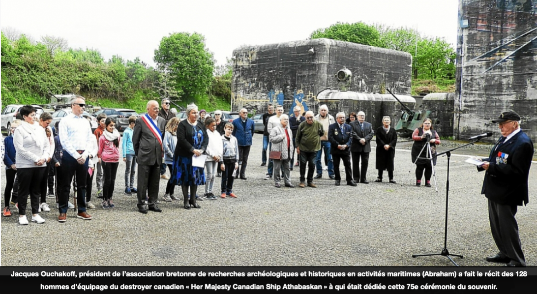 Lundi après-midi, le fort Montbarey, Mémorial des Finistériens, a organisé une cérémonie pour les 128 hommes d’équipage du destroyer canadien « Her Majesty Canadian Ship Athabaskan » qui ont perdu la vie lors d’opérations maritimes préparatoires au Débarquement en Normandie. Le navire a été envoyé par le fond au large de l’île Vierge, le 29 avril 1944, après une succession de violents combats navals opposant des bâtiments alliés à ceux de la Marine allemande.